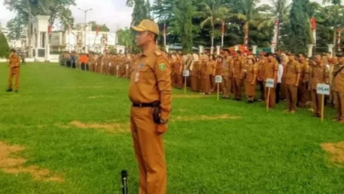 BUNTOK – Kepala Badan Pengelola Keuangan dan Aset Daerah (BPKAD) Barito Selatan (Barsel), Kalimantan Tengah (Kalteng), Ahmad Akmal Husaen bertindak sebagai komandan apel gabungan dan doa lintas agama.