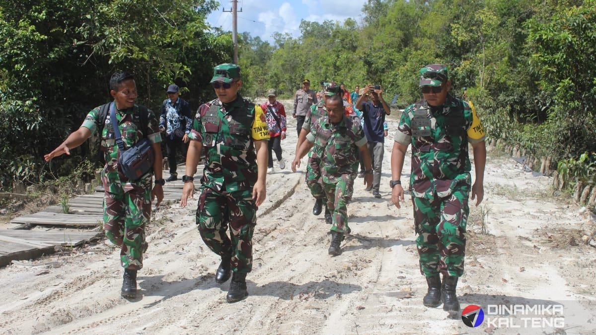 Tim Wasev TNI AD meninjau langsung lokasi pembangunan jalan dalam program TMMD ke-124 di Desa Talio (foto: DINAMIKA KALTENG/mas)