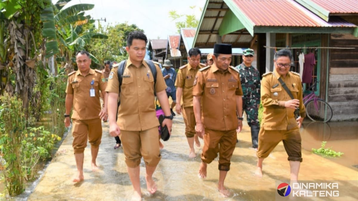 Wakil Bupati Barito Selatan, Khristianto Yudha, bersama jajaran perangkat daerah meninjau langsung lokasi banjir di Desa Talio, Karau Kuala (foto: DINAMIKA KALTENG/mas)
